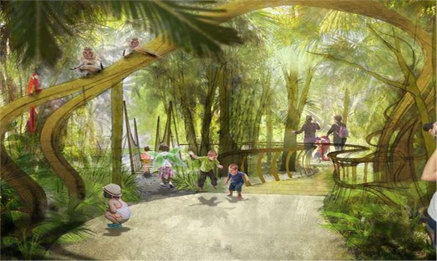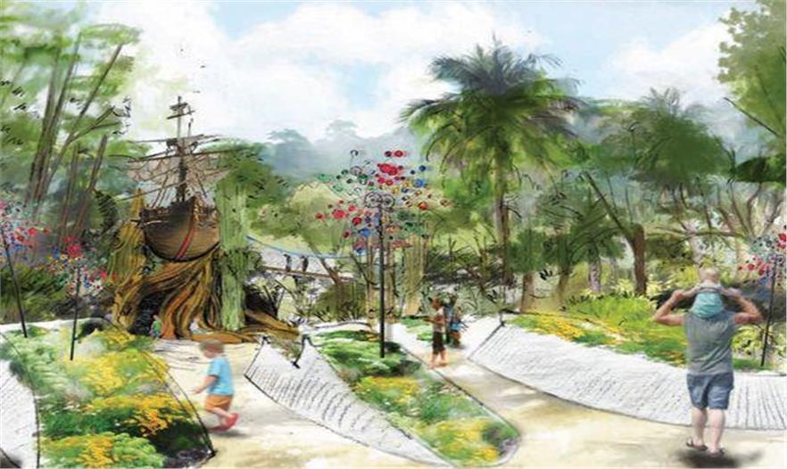 該花園將位于麥基植物園的東北角,位于0.4公頃(1英畝)未充分利用的空間上,將包括橋、滑梯、噴水泉和一個(gè)沉船樹屋,致敬1715年沉沒的西班牙船隊(duì)。猴子、蘑菇和鸚鵡的藝術(shù)性展示將向之前驚艷該地區(qū)的事物表達(dá)敬意,那時(shí)被稱為麥基叢林園。該自給自足的區(qū)域包括保安攝像機(jī)和小推車以及美國(guó)殘疾人法案規(guī)定的通道。