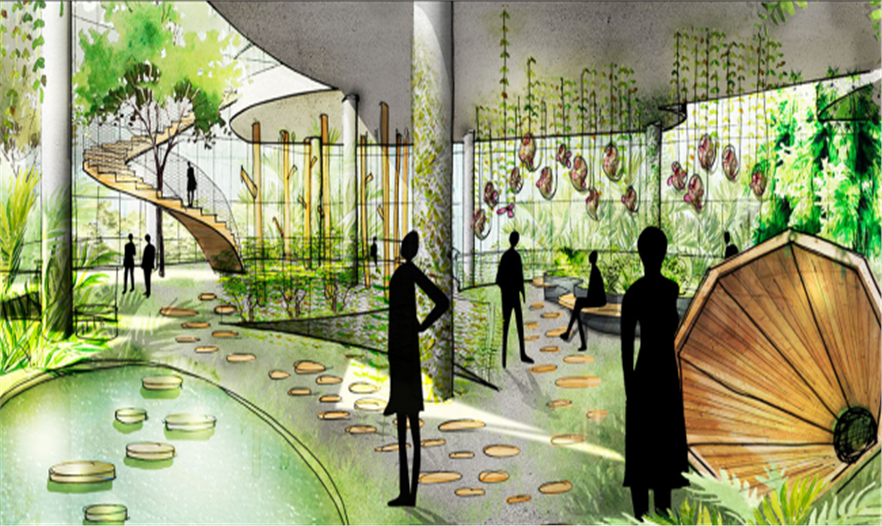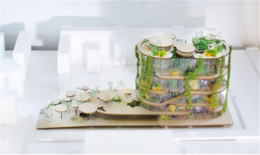 Greennest游客體驗(yàn)館占地1萬平方米,與酒店和額外設(shè)施結(jié)合起來。該體驗(yàn)館以互動(dòng)方式在其自然棲息地中展示荷蘭花藝。該建筑暗喻自然,設(shè)置一個(gè)60米高層疊設(shè)計(jì)的溫室,其上層樓層設(shè)有較高的天花板和更多的開口和孔洞,模擬森林體驗(yàn);地面樓層較黑,而頂樓要明亮、通風(fēng)些。該酒店房間位于該體驗(yàn)館的中間,讓酒店客人在晚上也能體驗(yàn)到綠色。一樓的非正式飯店以及屋頂花園的高級(jí)餐廳會(huì)部分使用生長(zhǎng)在自家花園中的產(chǎn)品。