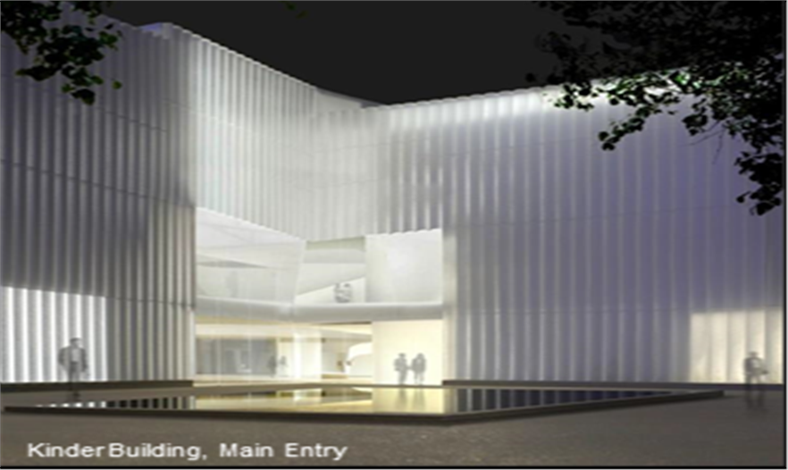 Nancy and Rich Kinder大樓和格拉塞爾藝術(shù)學(xué)校都是占地14英畝的博物館中Susan and Fayez S. Sarofim校園重建的一部分。斯蒂文霍爾事務(wù)所從2012年的國(guó)際競(jìng)賽中獲勝而被委托進(jìn)行設(shè)計(jì),當(dāng)時(shí)進(jìn)入到?jīng)Q賽的其他競(jìng)爭(zhēng)者為Snohetta和Morphosis事務(wù)所。