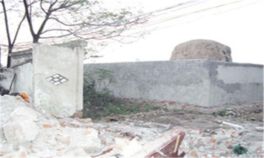 記者趕到鄂州那天,已是日暮時分。在當地居民的指引下,記者才找到摩崖石刻。只見一塊褐色的石頭,已被兩米高的水泥墻圍了起來。鏡頭稍微拉開一點,這個國家重點保護文物四周,便是拆遷后的殘垣斷壁,廢棄的磚頭、鋼筋、破布散落一地。冬日夕陽的斜照下,一片蕭索。
