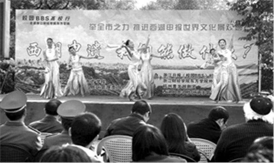 東方學(xué)院黨總支副書記伏曉紅說,學(xué)院倡導(dǎo)黨團(tuán)組織、學(xué)生社團(tuán)開展各種形式的活動,為西湖申遺營造氛圍。大學(xué)生不但是宣傳者,更是實踐者,因此學(xué)院出臺了相關(guān)措施,用來鼓勵學(xué)生走上社會,參與西湖申遺等公益活動。外語系的同學(xué)們專門開展了“促西湖申遺,展大學(xué)風(fēng)采”團(tuán)日活動,向外國友人宣傳西湖,讓他們在領(lǐng)略西湖風(fēng)情的同時,加深對西湖的了解。