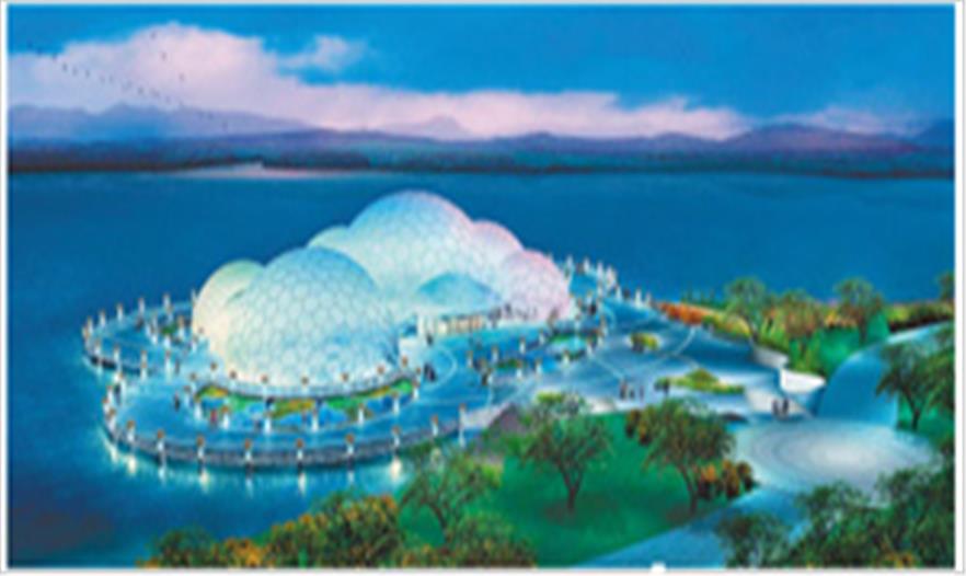 西安世界園藝博覽會(huì)園區(qū)建成后的大溫室外景,很容易讓人聯(lián)想到水立方。(效果圖)