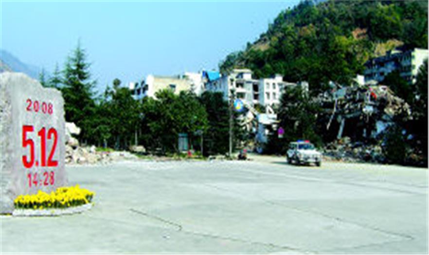 北川縣政府遺址前的紀(jì)念碑