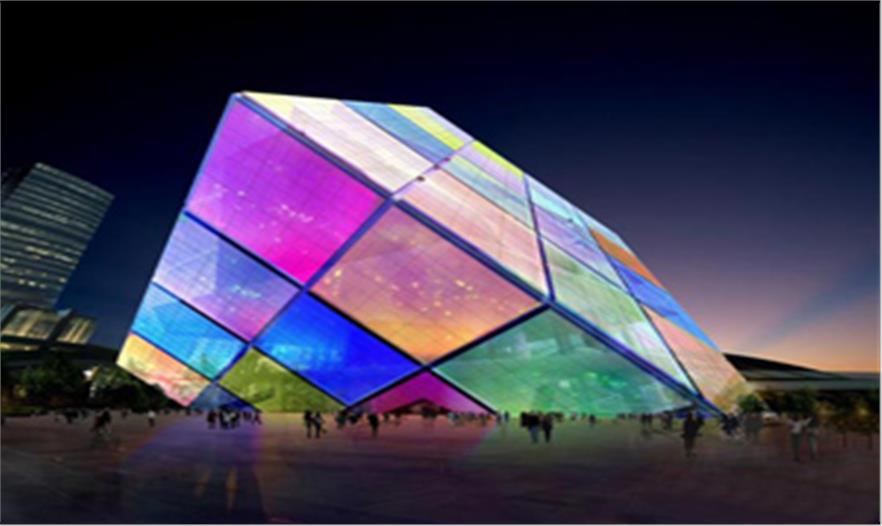為了使魔方體在夜晚產(chǎn)生奇幻的視覺效果,演藝廳橢圓穹頂及魔方體玻璃外殼上設(shè)計了一套完整的LED夜景照明系統(tǒng),更加讓人對神奇的魔方充滿向往。