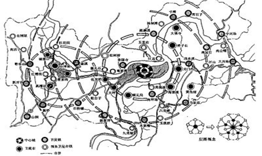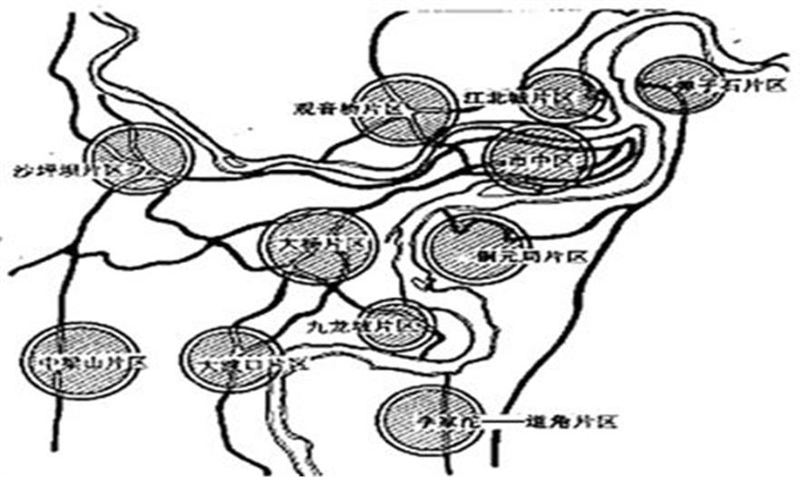 1960年,我市編制了解放后的第一個城市總體規(guī)劃――《重慶城市初步規(guī)劃》,城市用地遵循“大分散、小集中、梅花點狀”的布局原則,強調(diào)將工業(yè)在更大范圍內(nèi)分散,規(guī)劃了市中區(qū)、大楊區(qū)、大渡口區(qū)、沙磁區(qū)、中梁山區(qū)、江北工業(yè)區(qū)、彈子石工業(yè)區(qū)、南坪工業(yè)區(qū)、李家沱-道角工業(yè)區(qū)等9個片區(qū),在外圍規(guī)劃了北碚、歇馬、西彭和南桐4個衛(wèi)星城?!俺跻?guī)比較簡單,但滿足了當時的發(fā)展需要。”張遠說。