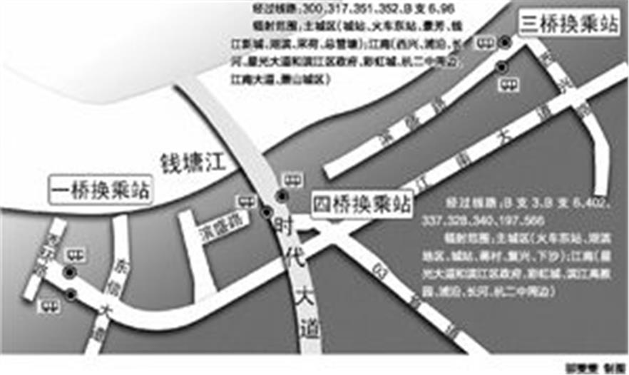 在錢塘江上,連接杭州主城區(qū)和南部新區(qū)的大橋一座接著一座竣工通車,但是高峰時段熱門線路的公交線路還是擁擠不堪,進一次城在路上花費一兩個小時是家常便飯。由于杭州市濱江區(qū)將“同臺換乘站”這個新理念,首次應用公交換乘,這樣的情況在2009年年底之前將大大改善。