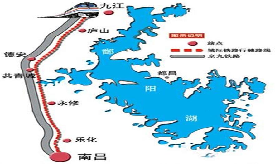 昌九城際鐵路九江段軌道交通線路平面示意圖