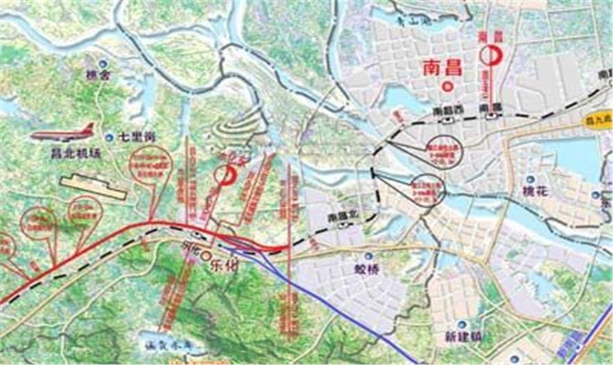 昌九城際鐵路南昌段軌道交通線路平面示意圖