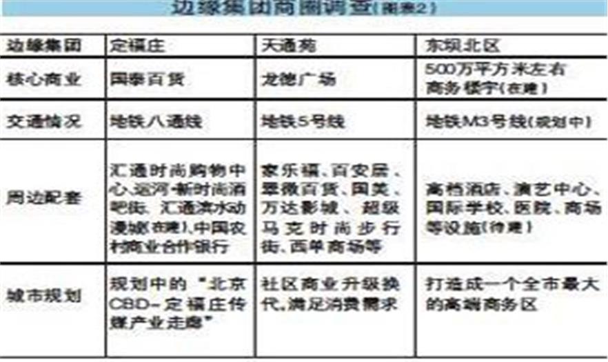 “邊緣集團(tuán)是很有發(fā)展空間的。在天通苑、回龍觀等大型社區(qū)中,商業(yè)都處于發(fā)展的階段,目前也許只能滿足周邊居民生活必需品的需求,以后應(yīng)當(dāng)向著綜合的休閑娛樂等一體化的商業(yè)模式發(fā)展。”黃愛光教授說。(圖表2)