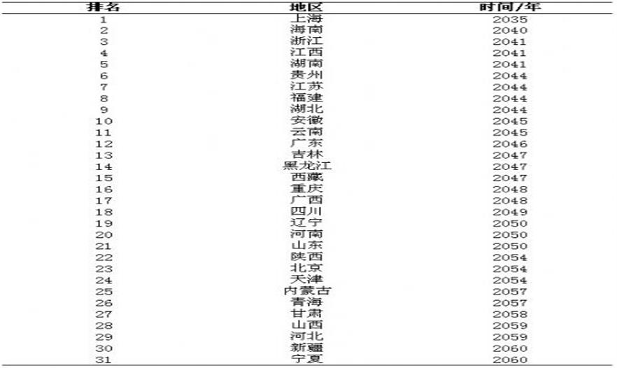中國各地實現(xiàn)“生態(tài)環(huán)境退化零增長”的時間表