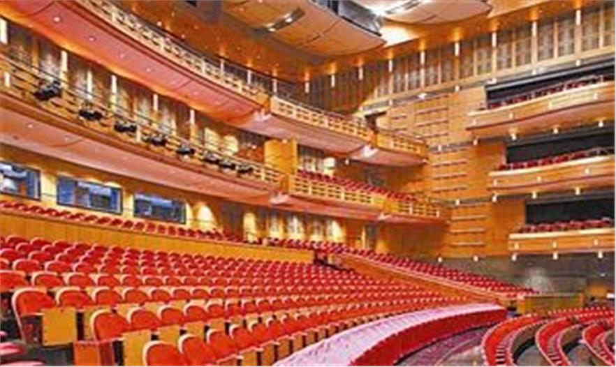 其中,大劇場位于劇院南面,能滿足歌劇、舞劇、芭蕾、交響樂等各類大型演出的需求。針對這些不同演出的聲學(xué)效果,方案充分利用觀眾廳上部富余的空間作為調(diào)節(jié)觀眾廳混響時間的混響室,使觀眾廳的混響時間在1.2—2秒內(nèi)可調(diào)。觀眾廳平面采用馬蹄型設(shè)計,這種形狀能形成良好的聲學(xué)效果,并能獲得所需的最佳聲學(xué)質(zhì)量。設(shè)池座894座,樓座306座,池座和樓座之間凈高較大,保證了池座后區(qū)良好的視線和聲學(xué)環(huán)境。劇場的側(cè)臺、后臺上部空間設(shè)置了配套的大排練廳。排練廳地坪設(shè)隔聲地坪,保證隔聲效果。