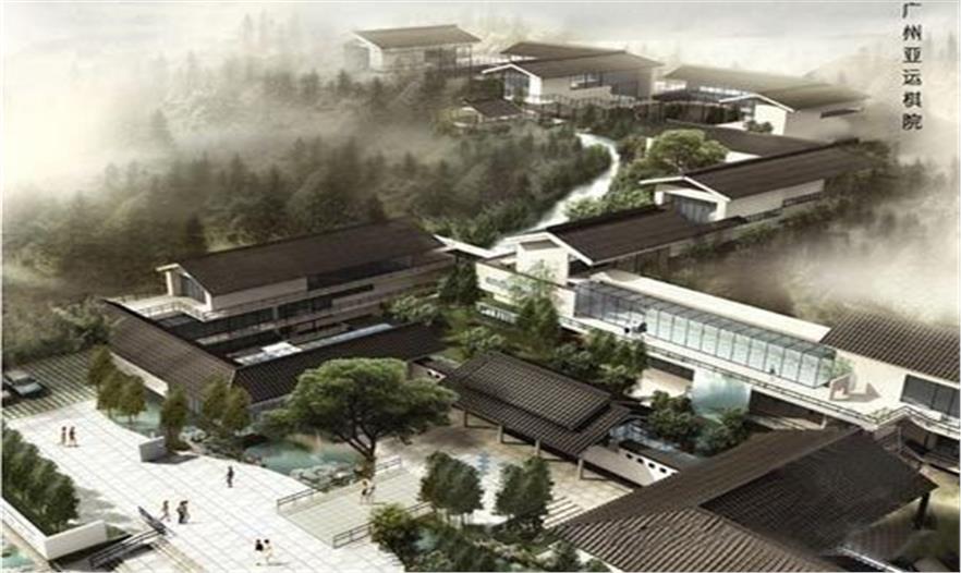 在這里,建筑與自然完全地融合在一起,而它的嶺南園林風(fēng)格在所有亞運(yùn)場(chǎng)館中也別樹一幟。棋院占地12000平米,建筑面積14000平米,由于采用了半下沉的結(jié)構(gòu),整個(gè)棋院依坡而建,一點(diǎn)也不顯得突兀,看上去與周圍的環(huán)境和諧統(tǒng)一。