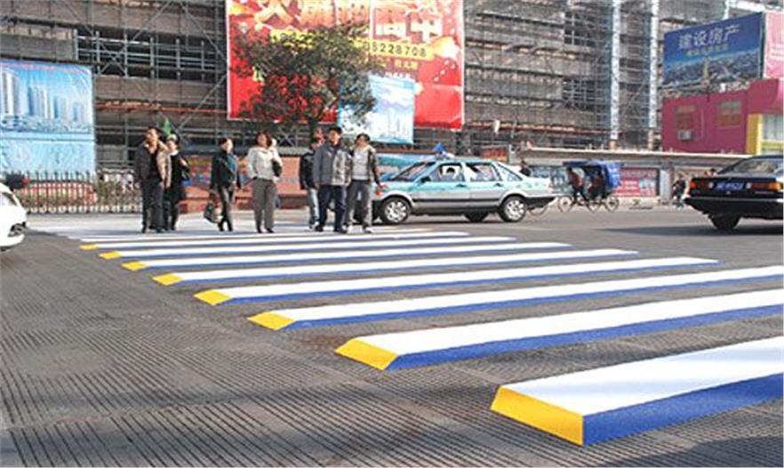 2008年12月10日,浙江省臺州市椒江區(qū)交警部門在市區(qū)椒江解放路推出立體感的彩色斑馬線。藍(lán)白黃三色相間彩條,使平面的斑馬線呈現(xiàn)立體感,帶給過往司機(jī)強(qiáng)烈的視覺刺激作用,增強(qiáng)了對車輛行人的交通警示。據(jù)了解,當(dāng)時(shí),這種立體感彩色斑馬線在國內(nèi)尚屬首次推出。