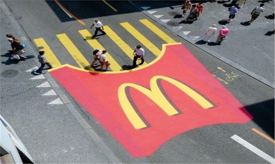 這是瑞士一間TBWA廣告公司為麥當(dāng)勞設(shè)計的廣告,特別之處就是在于斑馬線上的紅色的薯條袋,上面一個大大的黃M,一根根黃色的斑馬線就像插在袋子里的薯條一樣,經(jīng)過的人無法不給這個形象、色彩反差極大的廣告所吸引,總之,你想不看都不行。