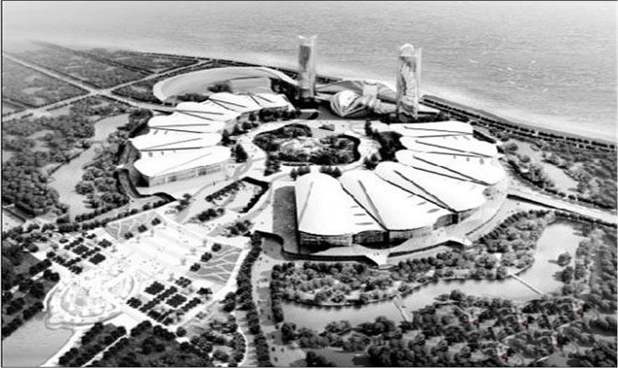 目前國博公園景觀建設(shè)工程已全面展開,面積相當于一個中山公園,達31萬平方米,預計8月底完工。公園將采用的綠化植物達207種。公園主要由中央水系、環(huán)狀水系和館前廣場三部分組成。其中,公園的中央水系及繞展館四分之三圈的環(huán)狀水系,體現(xiàn)武漢多水城市特色,兩水系通過地下管道等設(shè)備與長江水進行交換循環(huán),水系最深處為1.5米。另外,該園的館前廣場由噴泉廣場、集會廣場及林蔭樹陣廣場組成。噴泉廣場的噴泉直徑達90米,是目前武漢規(guī)模最大,檔次最高的音樂噴泉。