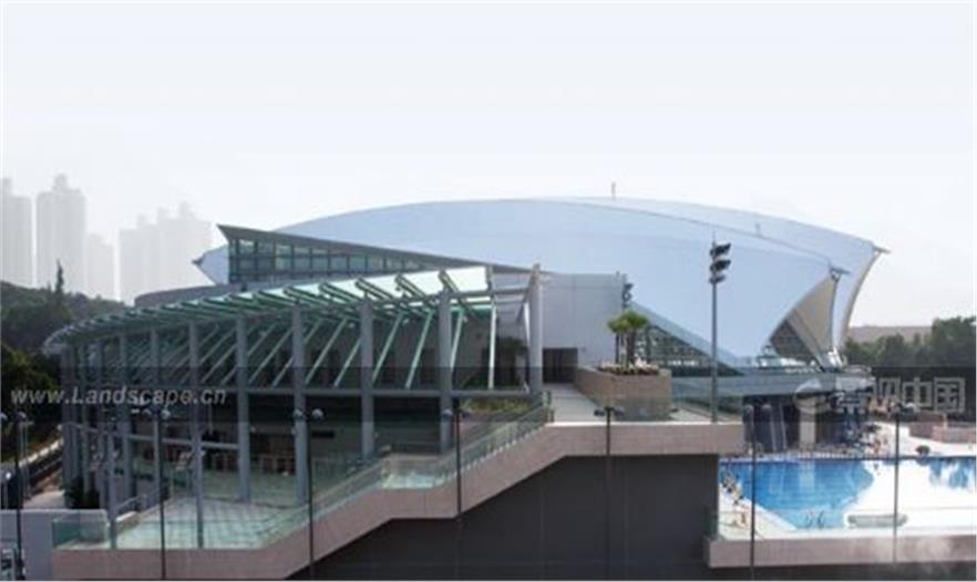 在泳池大廳外,人們可以在開放的區(qū)域之間排隊(duì)進(jìn)入。大廳被設(shè)計(jì)成一個(gè)半開放的空間,用毛玻璃天窗進(jìn)行蔭蔽,使得人們免受夏日強(qiáng)烈的熱量和陽(yáng)光的照射。 整體設(shè)計(jì)意圖為居民們創(chuàng)造出一種新鮮的空間體驗(yàn)和顯示出新城中的社區(qū)符號(hào)。