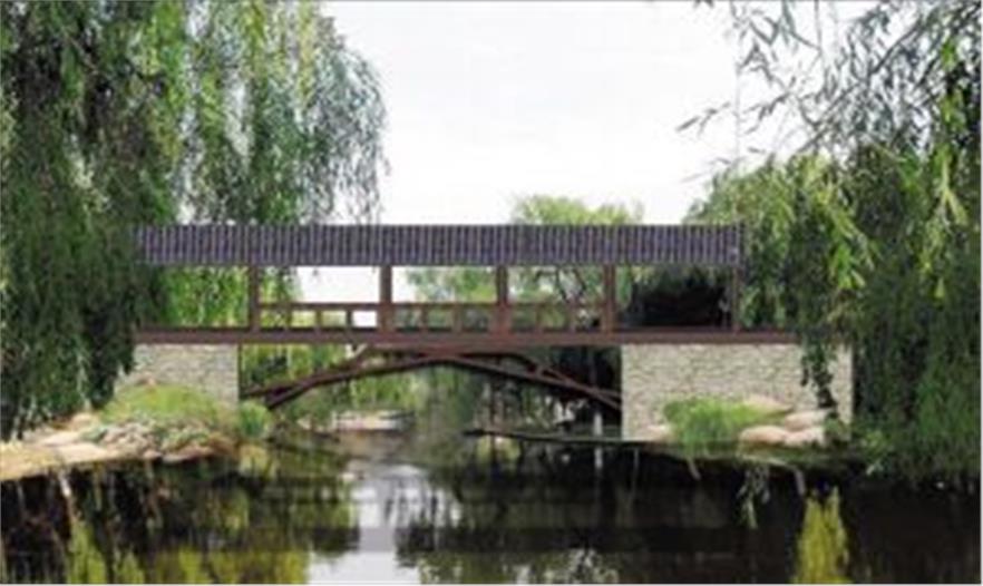 根據(jù)濕地公園的景觀分區(qū)和游覽路線規(guī)劃,整個公園分為“兩線三區(qū)”(兩條線,三個區(qū))“二十四橋”“三十二景”。其中“兩線”指的是由雁翎渡至逍遙津的 水上游覽線和從蒹葭淀到放鶴軒的陸地游覽線,“三區(qū)”指的是“青蘆白露”“蓼岸荻花”“芝堤云岫”,“二十四橋”包括十二勝橋、十二匠橋,以在中國風(fēng)景園 林歷史上占有重要地位和作出重要貢獻(xiàn)的十二個風(fēng)景名勝地名和十二個園林大師人名命名,并暗含杜牧的“二十四橋明月夜”詩意。對“二十四橋”的設(shè)計,設(shè)計師 查閱了大量的有關(guān)我國古代橋梁發(fā)展史的資料,它們的原型或是代表了我國古代橋梁發(fā)展的一個歷史階段,或是代表了一個地域的橋梁建筑特點,抑或是代表了某一 橋梁建筑的結(jié)構(gòu)特色。規(guī)劃中的“三十二景”可稱作十六對景,目前“五谷園與同樂苑”和“孔雀嶺與戾天鳶”的方案相對成熟完善。