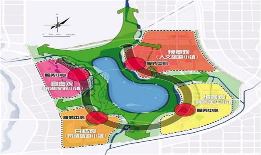 據(jù)了解,在“一湖、一環(huán)、四觀、四中心”的空間結(jié)構(gòu)中,“一湖”是指昆明池以及緊密圍繞昆明池形成的濱湖綠地,是整個(gè)片區(qū)空間結(jié)構(gòu)的核心;“一環(huán)”是指片區(qū)主要公共服務(wù)設(shè)施濱湖布局,形成一個(gè)與昆明池聯(lián)系緊密的環(huán)湖公共服務(wù)帶;“四觀”為由昆明池主要進(jìn)出水口周邊生態(tài)綠地自然分割形成的四個(gè)各具特色的風(fēng)情小鎮(zhèn),即為豫章觀、細(xì)柳觀、白楊觀、宣曲觀;而“四中心”則是指各個(gè)小鎮(zhèn)的服務(wù)中心。