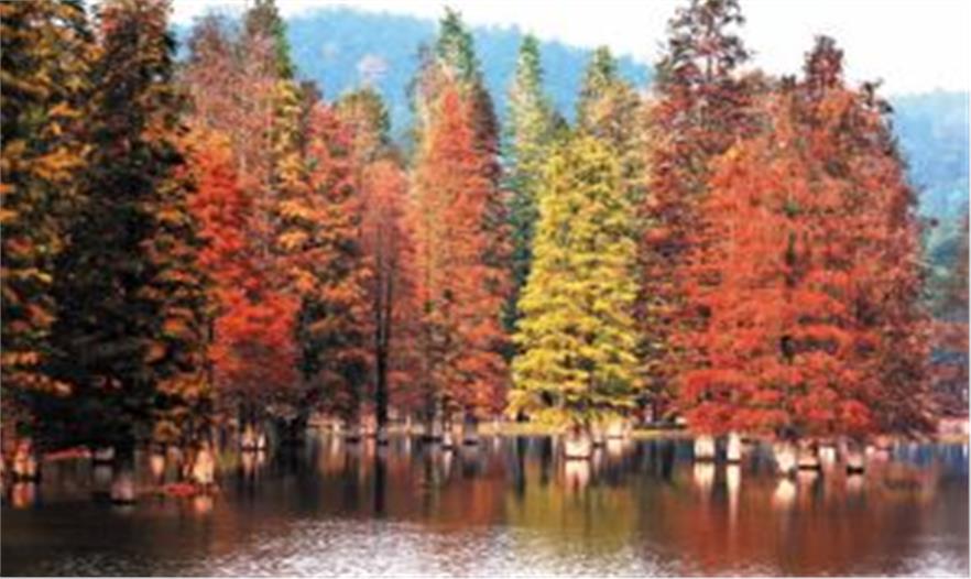 座談會(huì)上,專家們播發(fā)的一組《北美秋色》《日本德國(guó)秋色》照片,引得各縣(市)林業(yè)局長(zhǎng)們聚精會(huì)神,嘖嘖叫好。有人私下嘀咕,老外能夠把山林綠化當(dāng)作藝術(shù)風(fēng)景一樣來(lái)經(jīng)營(yíng),動(dòng)盡腦子,確實(shí)值得大家深思。浙江沒(méi)有這樣美景嗎?其實(shí)是有的,只不過(guò)都在深山林場(chǎng)里,平時(shí)外人很難看到而已。比如,10多年前,千島湖林場(chǎng)嘗試林相改造,在湖邊的馬尾松林中,補(bǔ)種一些闊葉變色的楓香樹(shù),一到秋天,楓香葉子慢慢變成紅、黃色,與馬尾松形成一道山湖相襯的美麗景觀。再如,安吉龍山林場(chǎng),30多年前,技術(shù)人員在小溪邊種了數(shù)十棵耐水的池杉,池杉到秋天,樹(shù)葉自動(dòng)變緋紅、暗紅、黃色,這樣就與周邊景致形成反差,場(chǎng)面煞是壯觀。