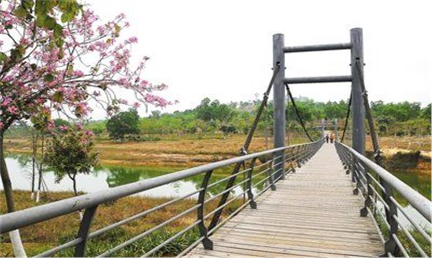 聚龍山生態(tài)公園內(nèi)的吊橋。 聚龍山生態(tài)公園自然環(huán)境良好。