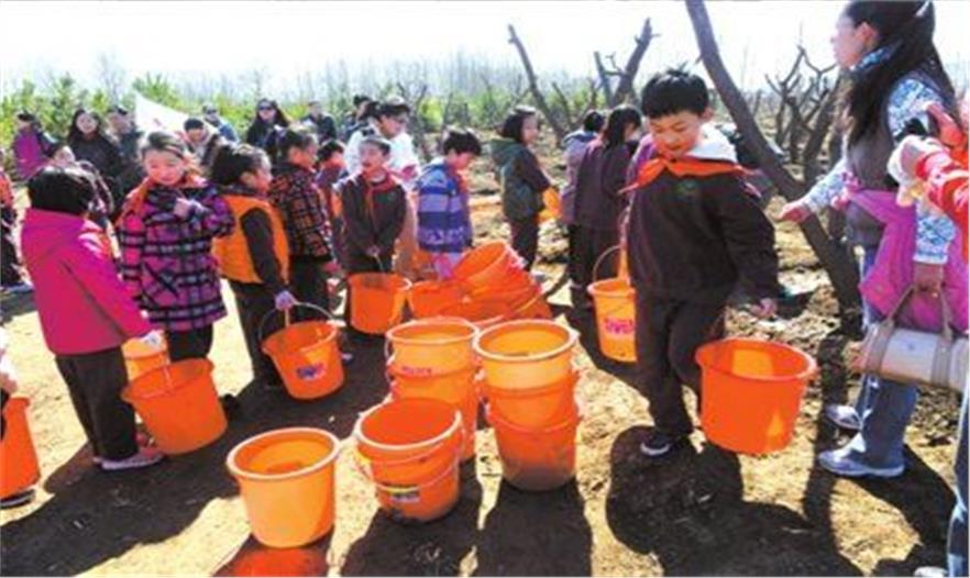 4月6日,在北京市海淀區(qū),小學(xué)生們和院士一起為首都添新綠。