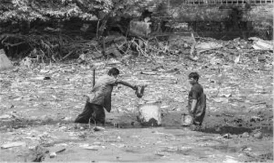昨日,魚塘里面堆滿了生活垃圾,養(yǎng)殖戶在混雜著垃圾的污泥里捕撈塘虱。