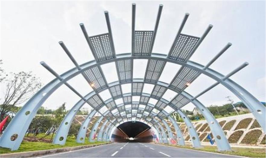 以隧道施工為例,寶蓋山隧道全長582米,長山隧道東線長406米、西線長463米,跨度大、凈距小、埋深淺、水系豐富、地質復雜。施工方采用多種開挖方法,選用造型簡潔美觀的接長明洞的削竹式洞門,既確保了施工安全,又有效保護了自然景觀。穿行在隧道內,洞門處光影變幻,猶如穿越時空隧道。
