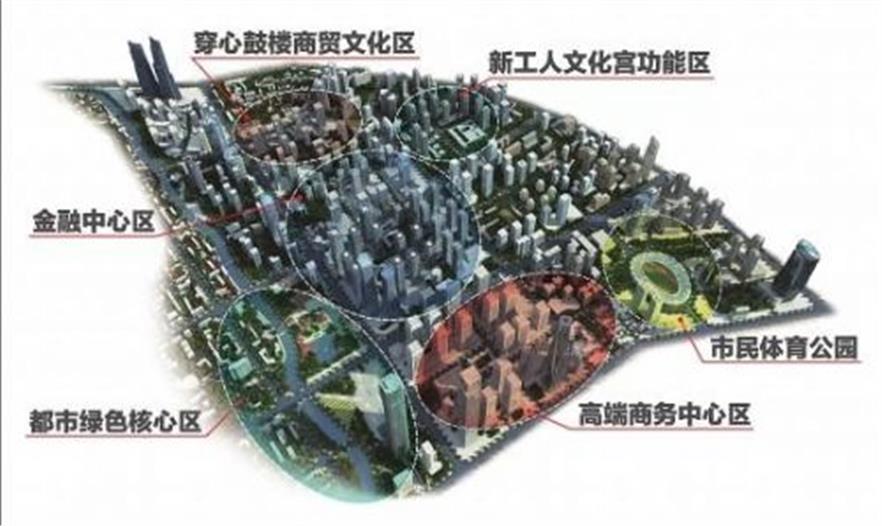 具體推介到“東風(fēng)廣場區(qū)域”未來定位的展望上,規(guī)劃中提到將在此處建設(shè)高達465米的城市新地標(biāo),該地標(biāo)將建在文化宮老樓南側(cè)、尚義街與拓東路之間的興仁街片區(qū),文化宮老樓所在地以及東風(fēng)廣場則將打造為“中央公園”。新的“中央公園”將與震莊賓館、茶花公園一同構(gòu)成“中央商務(wù)區(qū)”內(nèi)的“都市綠色核心區(qū)”,承擔(dān)起市級生態(tài)核心的功能。