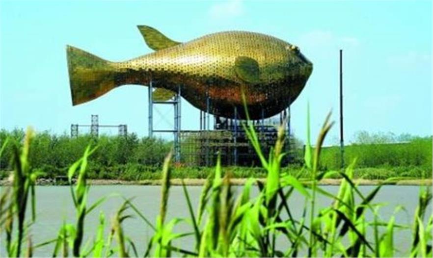 近日,江蘇揚中的園博園騰空現(xiàn)身一條巨型“黃銅河豚”,該“河豚”是坐落在揚中園博園里的觀光塔。觀光塔為異形塔狀鋼結構,重約2100噸,寬44米,高62米,長90米,外表由超過7000塊不同形狀的黃銅金屬表皮單元空間定位拼接而成。這尾巨型“黃銅河豚”是在為9月27日在揚中舉辦的第八屆江蘇省園藝博覽會造勢,據(jù)主辦方稱,該河豚景觀塔目前正在申報吉尼斯世界紀錄。CFP供圖