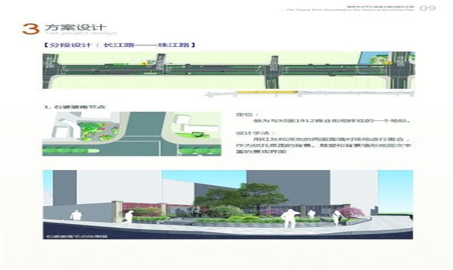 有兩個重點(diǎn)打造的節(jié)點(diǎn),即石婆婆庵和珠江路,“石婆婆庵對面就是1912商業(yè)街,要做成一個與之呼應(yīng)的地標(biāo)?!焙拷榻B說,會用紅灰和深灰的兩面圍墻對場地進(jìn)行圍合,作為烘托氛圍的背景,同時還要放置幾組民國時期的雕塑,“雕塑要有場所感與故事感。”他介紹說,雕塑的主題可以和生活相關(guān),比如黃包車、報童或者賬房先生,創(chuàng)造出那個時期城市特有的生活意象。也可以和文化有關(guān),比如學(xué)生雕塑,剛好呼應(yīng)周邊校園的文化氛圍。
