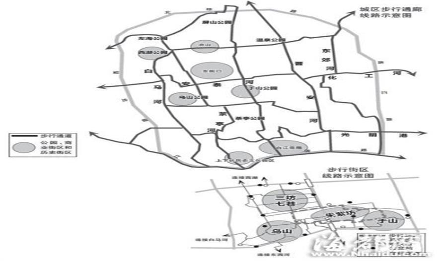 記者注意到,本次規(guī)劃,將從規(guī)劃步行通廊、規(guī)劃步行街區(qū)兩個(gè)方面構(gòu)筑步行慢道。