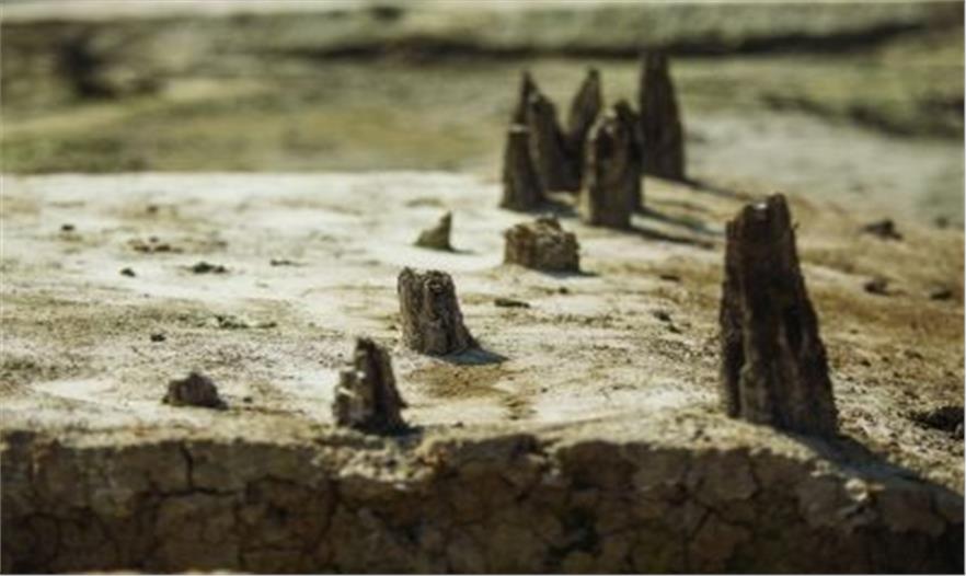 遺址北面一隅,還有一塊石柱基,由扁平的圓柱體與立方體組成?!斑@也是與建筑同時(shí)代的?!彼w住的土坑,也是當(dāng)年用來(lái)加固柱子的。此外,地面還留著排列成隊(duì)的“木樁”,不過(guò)它們直徑比較細(xì),留在地面的部分年代久遠(yuǎn),而碳化發(fā)黑。