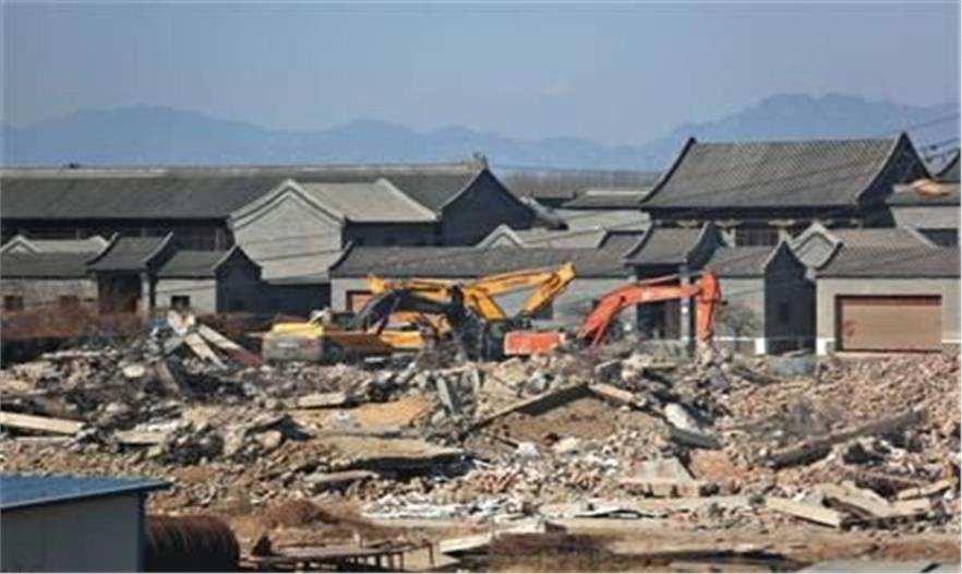 2月19日,昌平區(qū)北七家鄭各莊村北側(cè),37套違建四合院和6棟聯(lián)排別墅正在拆除。現(xiàn)場(chǎng)工人介紹,這里將來(lái)要建一片樹(shù)林。新京報(bào)資料圖片