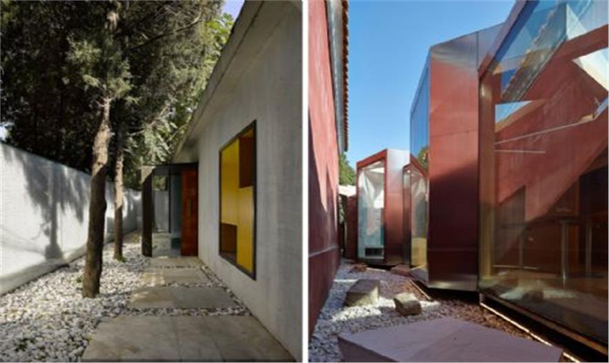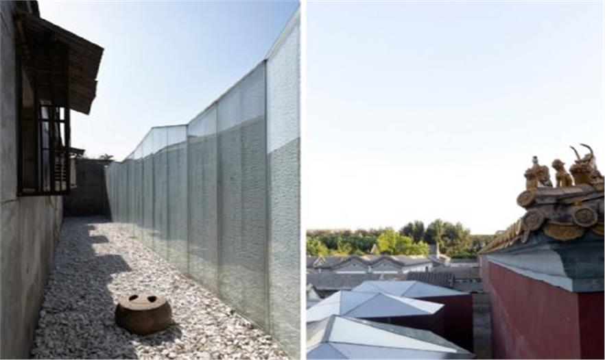 太廟茶室位于紫禁城東南角的勞動(dòng)人民文化宮院內(nèi),這里曾是明清兩代皇帝祭祖的地方。墻內(nèi)是原來皇家的圣地,墻外則是北京古城的基本背景肌理——老百姓居住的胡同。不知從哪個(gè)年代開始,這段東圍墻截止到了這里,在墻東外側(cè)的地下排水涵溝上蓋起了泵房、庫房和臨時(shí)宿舍,遮蔽住了這段宮墻的末端,墻內(nèi)也成了勞動(dòng)人民自由出入休閑息憩的地方。通過對(duì)宮墻內(nèi)外景觀肌理的重新梳理,我們掀掉了遮蔽宮墻的屋蓋,將周邊的景觀以院落的形式介入到建筑中來,造就了建筑中的院落,同時(shí)也是院落中的建筑。我們希望以輕松的方式,接續(xù)起一座連接傳統(tǒng)與現(xiàn)代、邊界與空間、宏偉與質(zhì)樸、神圣與世俗、隱蔽與開放、嚴(yán)肅與荒謬之間交流的橋梁,以引發(fā)人們重新思考空間、景觀與設(shè)計(jì)在我們這個(gè)時(shí)代真正有意義的價(jià)值所在。
