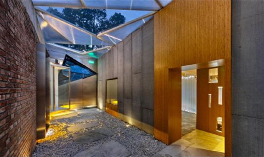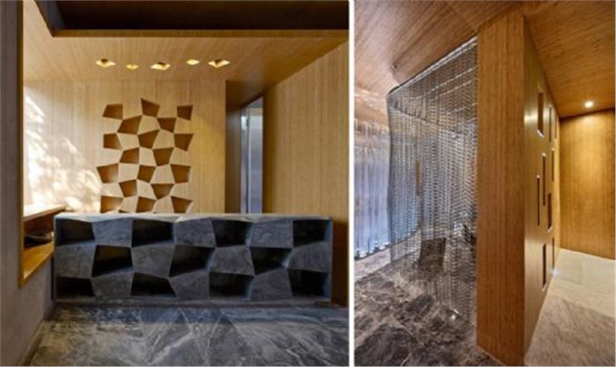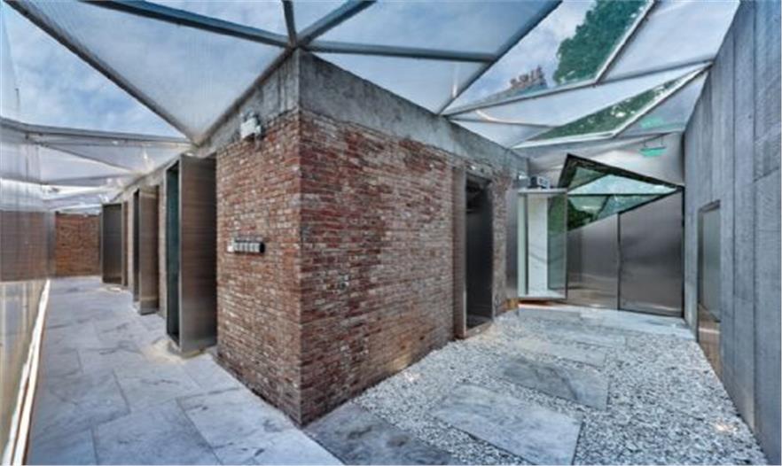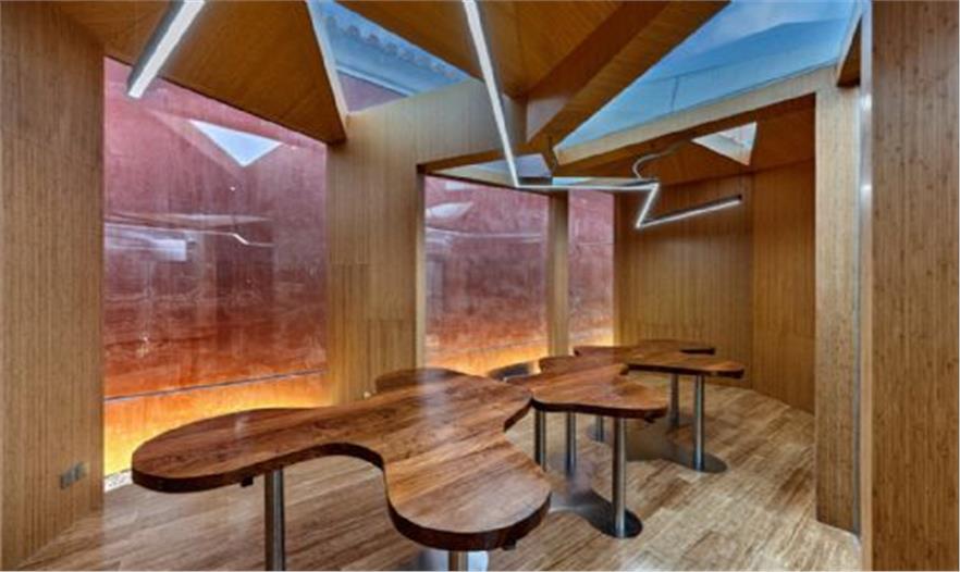 茶室由七個(gè)獨(dú)特且獨(dú)立的房間組成。像城市中的細(xì)胞,雖然微小,卻能在城市中留下印記。在這樣一個(gè)特定的環(huán)境,我們所要表達(dá)的,正是這種過程。我們基本上保留了現(xiàn)有建筑的形態(tài),利用原有門窗洞口向內(nèi)生長(zhǎng),形成房子中的房子,作為更為私密的茶室,仿佛是新生的蘑菇;又如建筑下面暗河中飛起的精靈,環(huán)繞著游走于兩座建筑周邊,留下的水痕,由門窗滲入建筑,便形成了這些茶室。在建筑內(nèi)部的每一個(gè)茶室以及消毒間等功能用房都是一個(gè)獨(dú)立的空間,與建筑屋頂脫開,有獨(dú)立的墻壁和頂棚,作為第二層表皮,自成一體,私密安靜,互不干擾。而它們之間以及它們與建筑之間的‘縫隙’便形成了交通和展示空間,這便使建筑內(nèi)部空間被極大豐富,產(chǎn)生了很多可以探索的角落,在狹小的空間中通過圍合界面獲取更多的空間感受,所謂小中見大。