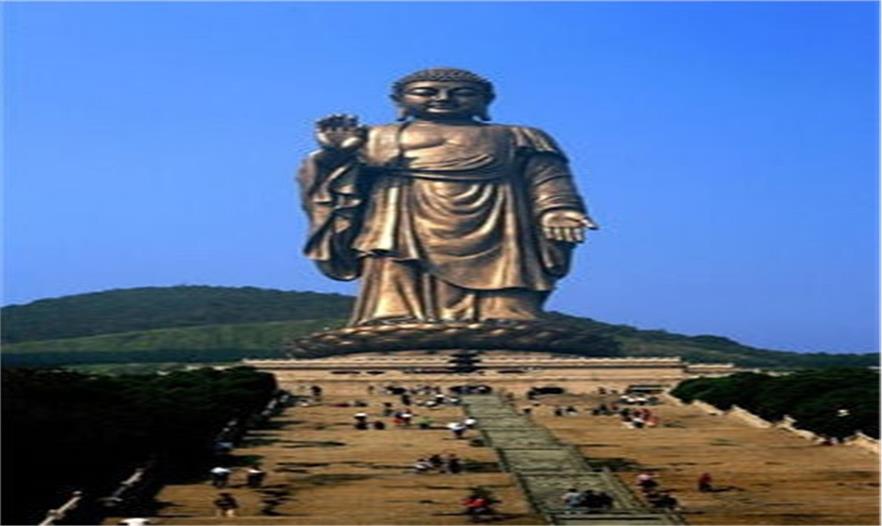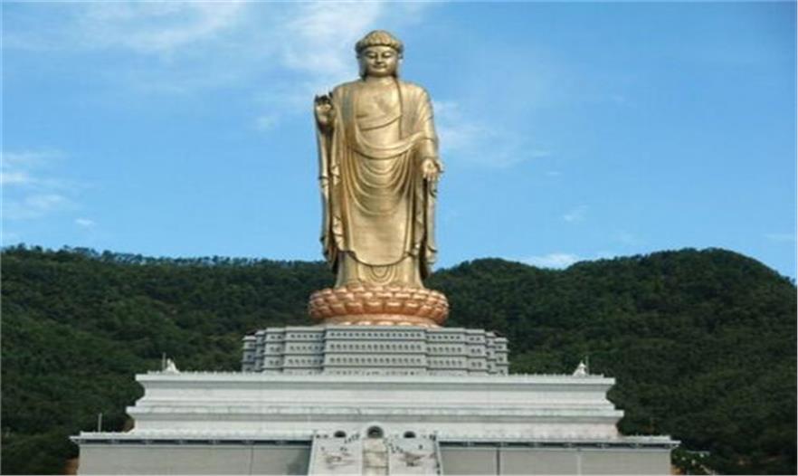 江蘇的靈山大佛,釋迦牟尼立像,青銅材料,通高88米,重700噸,佛體79米,蓮花瓣9米。公元1997年建成。靈山大佛坐落于無(wú)錫馬山秦履峰南側(cè)的小靈山地區(qū),大佛所在位置系唐玄奘命名的小靈山,故名靈山大佛。大佛慈顏微笑,廣視眾生,右手“施無(wú)畏印”代表除卻痛苦,左手“與愿印”代表給予快樂(lè),均為祝福之相。
