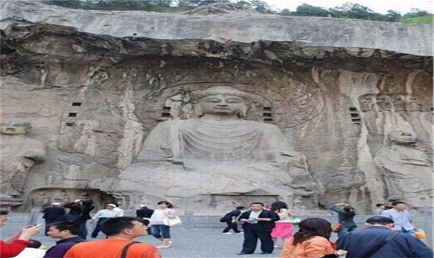 洛陽(yáng)龍門(mén)大佛,位于河南省洛陽(yáng)市城南13公里處的龍門(mén)石窟,盧舍那佛,石料,屬世界文化遺產(chǎn)。龍門(mén)全山造像11萬(wàn)余尊,最大的佛像盧舍那大佛,即龍門(mén)大佛,位于龍門(mén)西山南部山腰奉先寺,通高17.14米,頭高4米,耳長(zhǎng)1.9米,是按照武則天的形象塑造的,作于唐高宗咸亨四年,即公元672年,是龍門(mén)石窟中藝術(shù)水平最高、整體設(shè)計(jì)最嚴(yán)密、規(guī)模最大的一處。梵語(yǔ)“盧舍那佛”即光明普照、光輝普遍之意,是源自古代日神崇拜的太陽(yáng)神信仰而來(lái)。