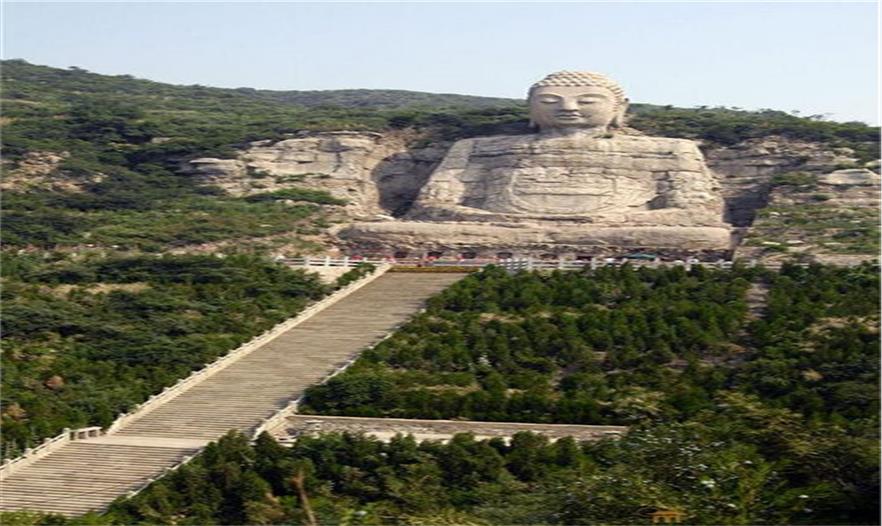 太原蒙山大佛,釋迦牟尼座像,石料,位于山西太原晉源區(qū)金勝鄉(xiāng)寺底村西北,是我國(guó)最早的露天摩崖石刻大佛,比已炸毀的西方公認(rèn)的“世界第一大佛”阿富汗巴米揚(yáng)大佛高10米,比中外馳名的四川樂(lè)山大佛早162年。北齊天保二年(公元551年),高洋帝將東魏大莊嚴(yán)寺擴(kuò)建為開(kāi)化寺,開(kāi)鑿了高達(dá)200尺的摩崖大佛,稱為西山大佛。太原蒙山大佛作為山西乃至世界佛教建筑、雕刻史上的一大奇跡,已引起國(guó)內(nèi)外有關(guān)學(xué)界的關(guān)注。