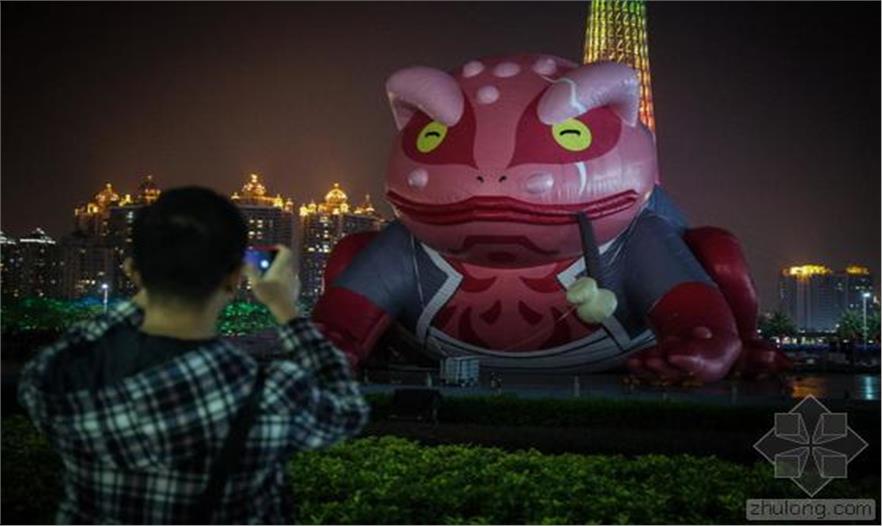 2014年11月12日,廣州珠江河畔的繁華之地——海心沙,一只憨態(tài)可掬的巨型蛤蟆文太吸引了許多游客和路人的關(guān)注,據(jù)工作人員介紹,這只巨型氣模文太體重約2.3噸,自11月10日凌晨兩點(diǎn)搭建完成后,每天都有慕名而來的火影粉絲與它合影留念。