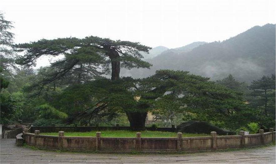 鳳凰松位于九華山的閔園景區(qū),是九華山的一大景觀。松高7.68米,胸徑1米,造型奇特,恰似鳳凰展翅,故名。這棵鳳凰古松,史載見于南北朝,相傳為南北朝時期的神僧杯渡所植,距今已有1400年的歷史,如今仍然挺撥蒼翠、枝繁葉茂。鳳凰松以其奇特雄姿和傳奇故事,成為古今眾多詩人、畫家、攝影家的贊美詩和優(yōu)美畫幅中的主角,被當(dāng)代著名畫家李可染譽(yù)為“天下第一松”。