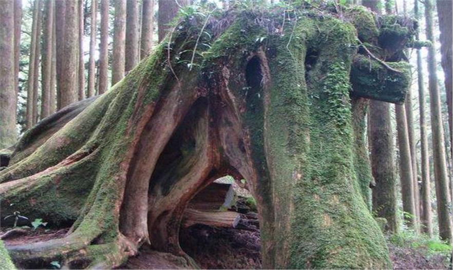 在阿里山主峰的神木車站東側(cè),聳立著一棵高凌云霄的大樹,樹身略傾側(cè),主干已折斷,但樹梢的分枝卻蒼翠碧綠,搖曳多姿,為阿里山增添了不少魅力。樹高約52米,樹圍約23米,需十幾人才能合抱,巍巍挺立,虬勁蒼郁,被人們尊為 “阿里山神木”。