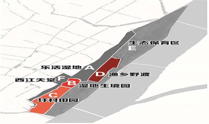整個(gè)濕地公園劃分為五個(gè)特色區(qū),其中A區(qū)樂(lè)活濕地地段將以服務(wù)居民、學(xué)生生活、康體、休閑及高端旅游配套為主。B區(qū)的濕地生境園為濕地互動(dòng)、博覽型目的地,C區(qū)圩村、D區(qū)漁鄉(xiāng)為生態(tài)文化體驗(yàn)休閑區(qū),E區(qū)生態(tài)保育區(qū)的主要功能是復(fù)育、保育、生態(tài)科研。