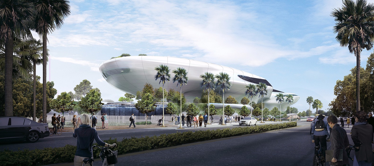 美國(guó)當(dāng)?shù)貢r(shí)間3月14日,由MAD建筑事務(wù)所設(shè)計(jì)的盧卡斯敘事藝術(shù)博物館在洛杉磯破土動(dòng)工?!靶乔虼髴?zhàn)之父”、博物館創(chuàng)始人喬治·盧卡斯 (George Lucas) 以及建筑師馬巖松、黨群和早野洋介均出席了位于洛杉磯博覽園(Exposition Park)的動(dòng)工儀式,博物館像是一艘“漂浮”著的未來(lái)戰(zhàn)艦,將以神秘且超現(xiàn)實(shí)的姿態(tài)“降落”在公園內(nèi)的自然環(huán)境中。