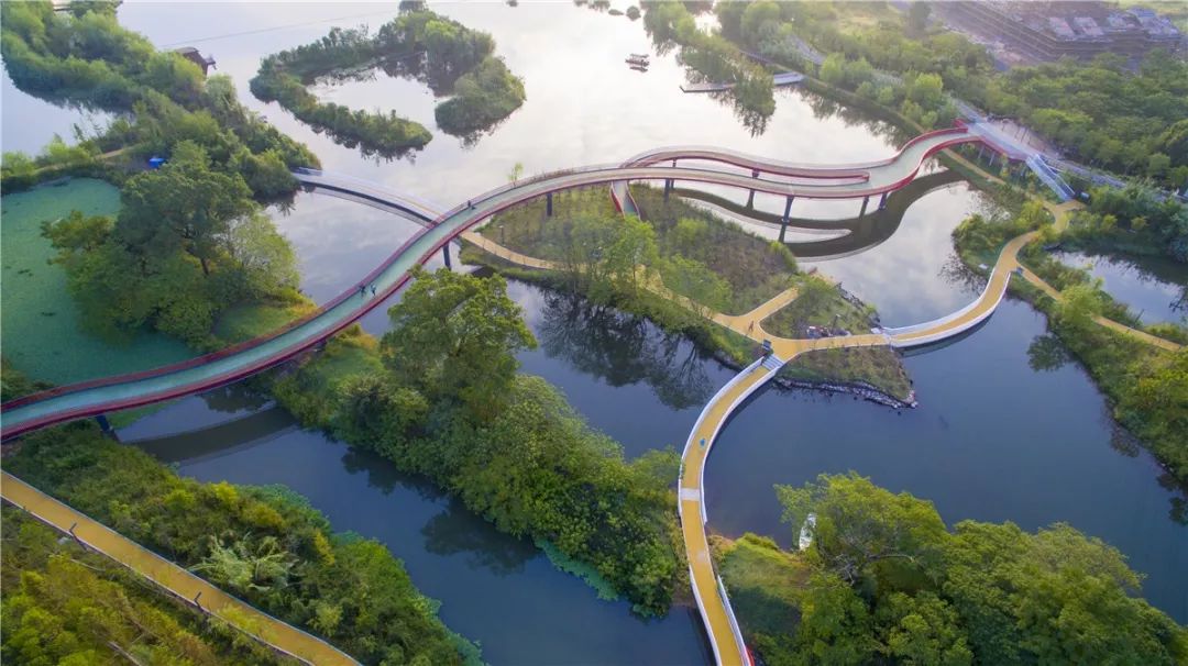 項目通過水生態(tài)修復(fù)和景觀營造,拯救了一條被拋棄的母親河。設(shè)計運用了生態(tài)水凈化、雨洪生態(tài)管理、與水為友的適應(yīng)性設(shè)計以及最小干預(yù)的景觀策略,將過去嚴(yán)重污染的河道徹底轉(zhuǎn)變?yōu)樽钍苁忻裣矏鄣纳鷳B(tài)、生活廊道。