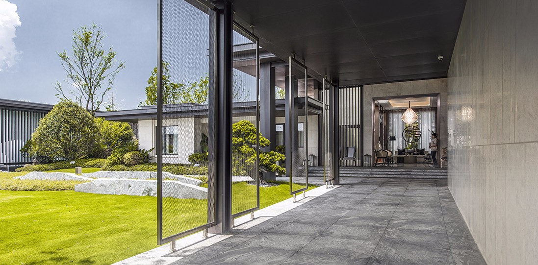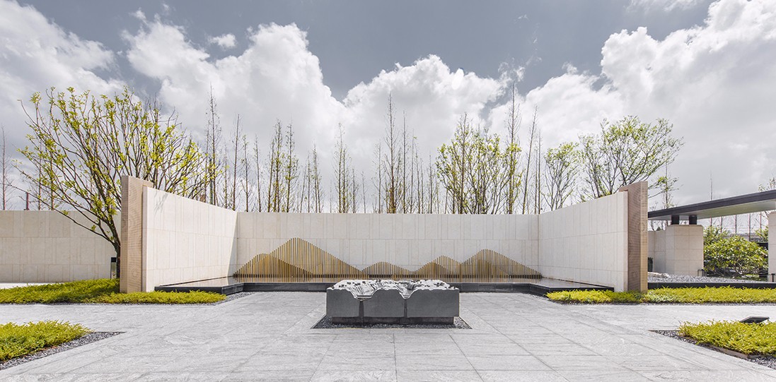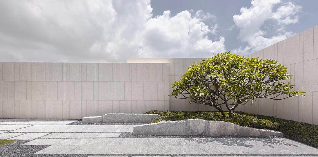 片墻圍合,山石著色,回避浮華的裝飾與線腳,聚焦于空間的比例與意境的營造,以自由的形式打通室內(nèi)外空間的連接,達到景觀與建筑的統(tǒng)一與融合。