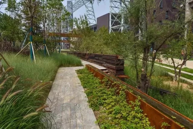 項目在節(jié)能、節(jié)水、建材選用等方面凸現(xiàn)綠色生態(tài)特色。景觀道路鋪裝使用了由園區(qū)拆除的建筑垃圾燒制而成的再生透水磚,起到減排效果,在達到綠色建筑星級標(biāo)準(zhǔn)的同時,也很好地詮釋了可持續(xù)發(fā)展、節(jié)儉辦賽的冬奧會理念。