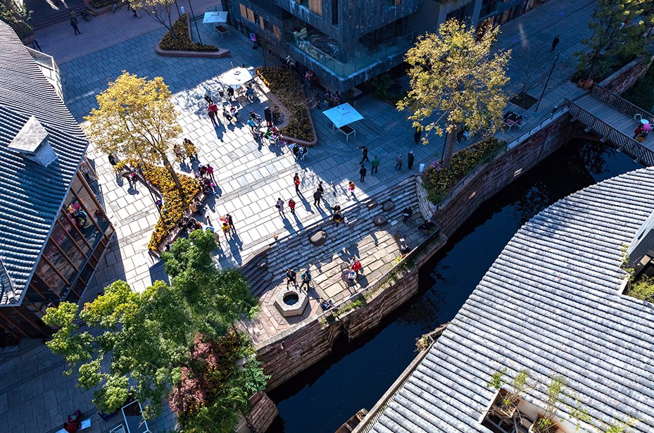 復(fù)原的護城河水體,結(jié)合自然流向和建筑韻律,水生植物與青石步階成為過渡,親近而質(zhì)樸。