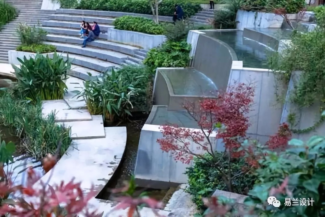 設(shè)計(jì)團(tuán)隊(duì)以“四水歸堂”為靈感,利用豎向高差,用景觀的手法再現(xiàn)了窨子屋四水歸堂的情景。