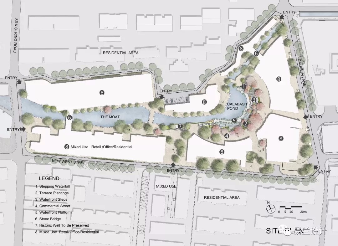 老西門項(xiàng)目位于湖南省常德市中心城區(qū),臨武陵閣廣場(chǎng)。易蘭設(shè)計(jì)團(tuán)隊(duì)通過(guò)對(duì)歷史基地和人文遺存的恢復(fù)及改造,運(yùn)用現(xiàn)代建造技術(shù)手段,巧妙融入藝術(shù)、文化、自然三大核心元素,通過(guò)三者之間的互動(dòng),充分展現(xiàn)文化、自然及普通市民生活方式的交替與匯聚特色。將藝術(shù)欣賞、文化傳播、自然綠化完美結(jié)合,力求為廣大市民呈獻(xiàn)一個(gè)具有深遠(yuǎn)歷史意義和社會(huì)價(jià)值的公共開(kāi)放城市空間。