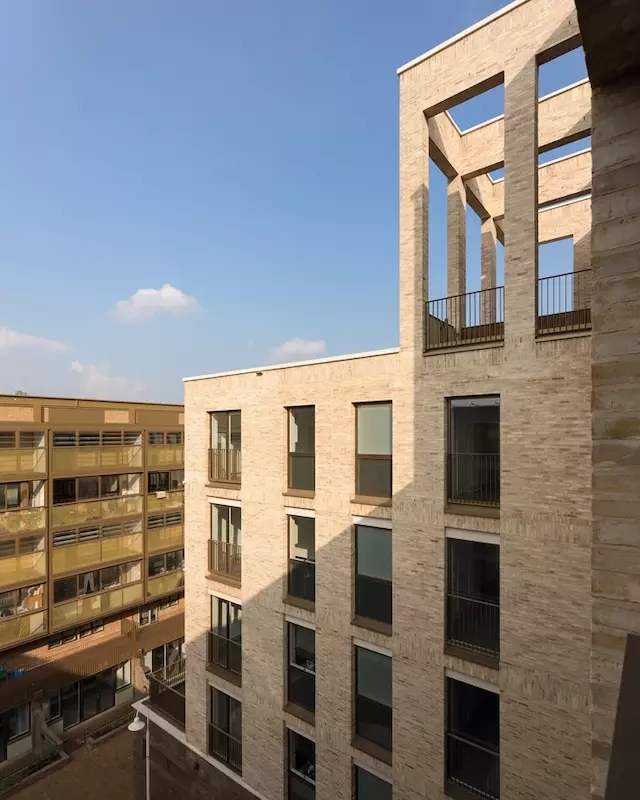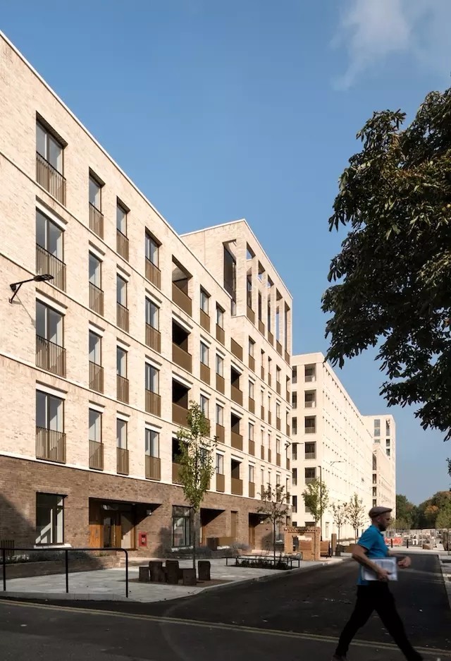 比如說,和一般大規(guī)模的房地產(chǎn)再生計劃不同的是, Kings Crescent Estate 住房改建項目的一期和二期沒有采用先拆除后重建的模式。位于倫敦的建筑事務(wù)所 Karakusevic Carson Architects 和 Henley Halebrown 將現(xiàn)有的房屋轉(zhuǎn)變成了三座磚砌結(jié)構(gòu)的公寓,它們高度不等,以更好地與周圍的街道和公園形成互動。建筑團隊還在社區(qū)內(nèi)部增設(shè)了新的連接通道和可滲透空間,以創(chuàng)設(shè)一個新的公共空間。其中包括擁有沉思、游樂和園藝這 3 個不同功能面向的庭院,以及一條促進社區(qū)融合的智能游樂街道。